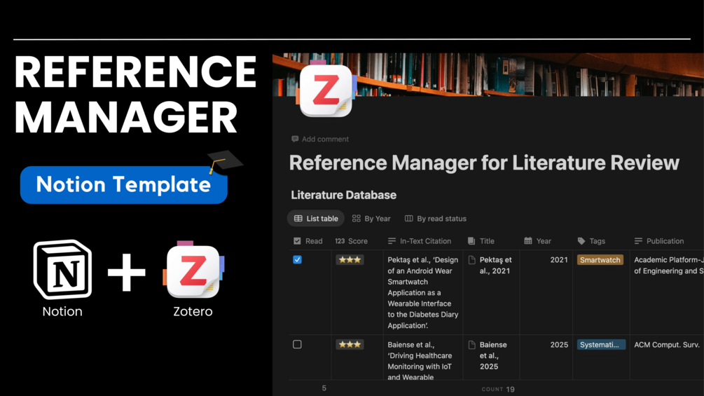 Manage your references in Notion. Sync with Zotero, stay organised, and analyse literature with a built-in summary note.